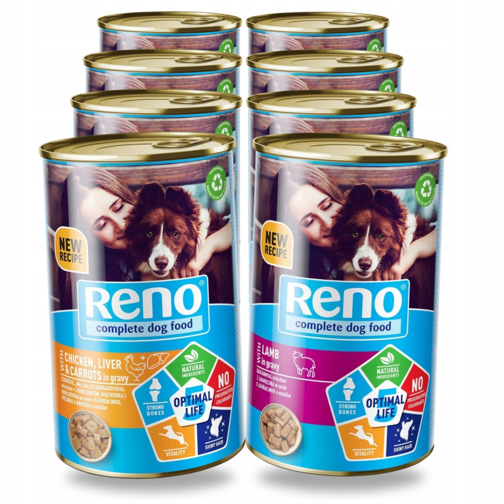 Reno OPTIMAL LIFE 5 je kompletna in visoko kakovostna mokra hrana za pse vseh pasem. Ta okusna mešanica vsebuje visokokakovostne sestavine, ki zagotavljajo uravnoteženo prehrano in optimalno zdravje vašega psa. Vsebuje kose jagnjetine in kurčka v omaki, ki so bogati z beljakovinami in esencialnimi hranili. Reno OPTIMAL LIFE 5 je obogaten z vitamini A, D3, E ter minerali, kot so cink, mangan in baker, ki podpirajo zdravje in vitalnost vašega psa. Zagotovite svojemu ljubljenčku najboljše z Reno OPTIMAL LIFE 5!