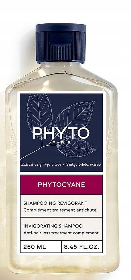 PHYTOCYANE szampon idealnie przygotowuje skórę głowy do zastosowania kuracji przeciw wypadaniu włosów. Delikatnie oczyszcza, przywracając włosom witalność i objętość. Włosy zyskują lepszą jakość, są mocniejsze i gęstsze. Szampon zawiera wyciąg z miłorzębu japońskiego, znany z właściwości rewitalizujących, który pomaga przywrócić włosom witalność i zdrowy wygląd. Prowitaminy B6 i B5 wzmacniają włókno włosa. Wyciąg z organicznego rozmarynu chroni skórę głowy. Nie zawiera silikonów i barwników.