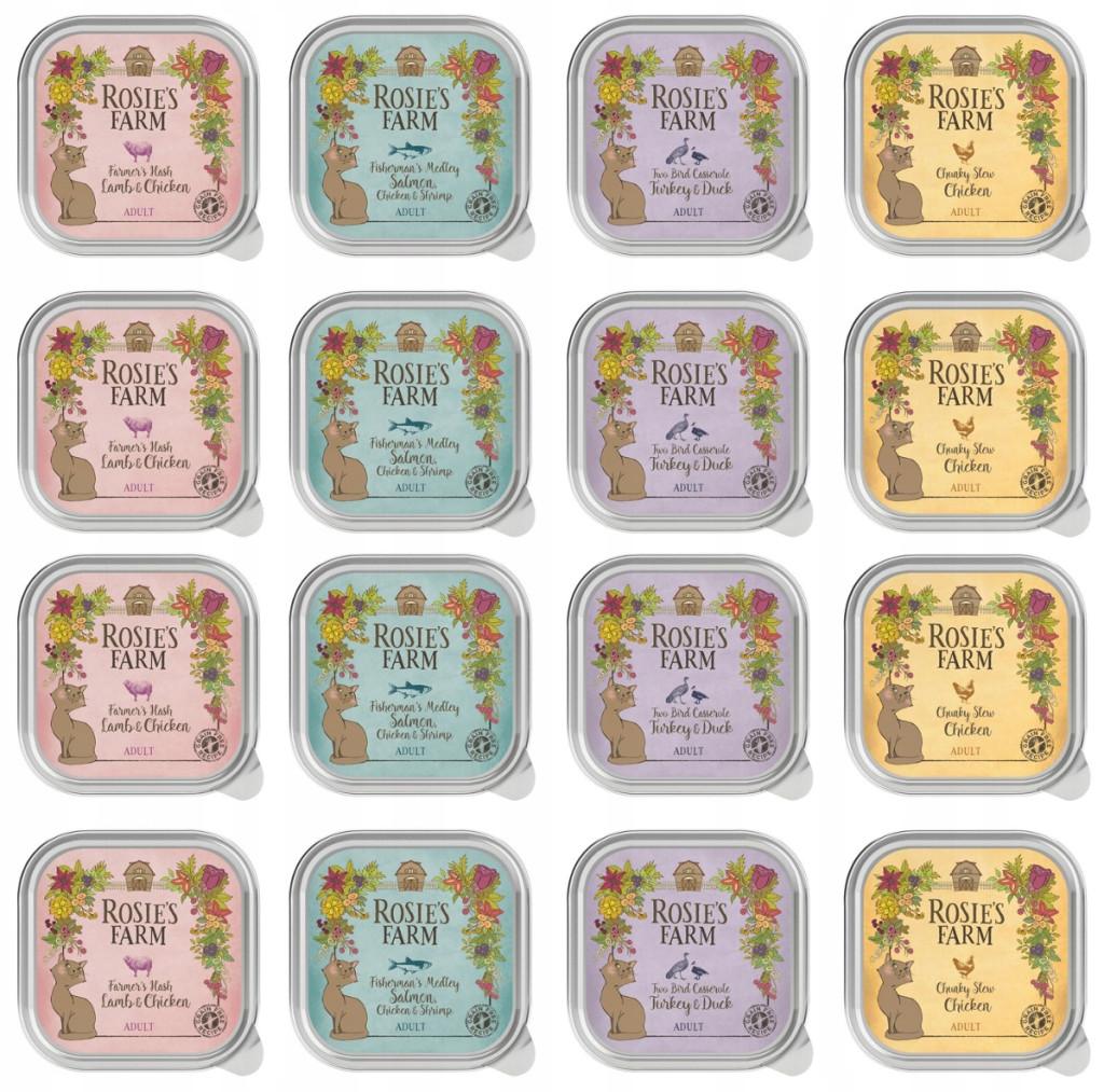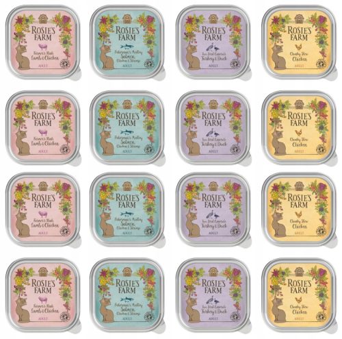 Nieziemsko smakowita i bezzbożowa karma dla kotów, z dużej ilości delikatnego mięsa, ryb lub krewetek, a także wysokiej jakości podrobów, wzbogacona pożywnym olejem z łososia i tauryną. Wszystkie starannie wyselekcjonowane składniki zostały poddane delikatnej obróbce, dzięki czemu karma dla kotów Rosie’s Farm smakuje jak karma domowej produkcji. Ponadto w procesie produkcji zachowane zostały wszystkie cenne składniki odżywcze. Twój kot zasługuje na dobre pożywienie.