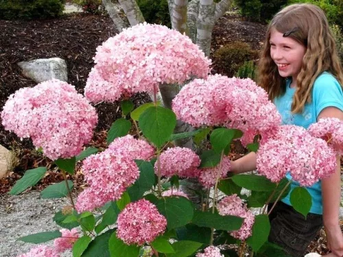 Hortensja drzewiasta "Pink Annabelle" to zupełnie nowa, spektakularna odmiana hortensji krzewiastej. Udało się w końcu otrzymać hortensję w kolorze różu! Pochodzi ona od białej hortensji Annabelle, rośnie do wysokości 120 cm . Kwitnie na pędach jednorocznych. Jest to odmiana powtarzająca kwitnienie, zaczyna kwitnąć w czerwcu i kwitnie aż do przymrozków. Kwiaty na starszych okazach potrafią mieć nawet 40 cm średnicy. Rośnie na każdych glebach, jednak najlepiej na żyznych, przepuszczalnych, wilgotnych.Wymaga stanowiska półcienistego, należy osłaniać od ostrego słońca.