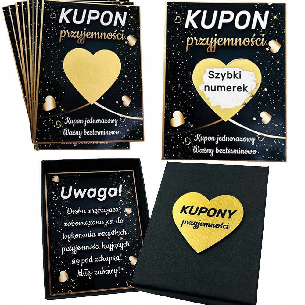 Zestaw jest gotowym do wręczenia prezentem dla Twojej drugiej połówki, który nadaje się na każdą okazję! Zaskocz partnera lub partnerkę tym niezwykłym zestawem zdrapek "Kupony Przyjemności" i stwórzcie razem niezapomniane chwile pełne miłości i radości!