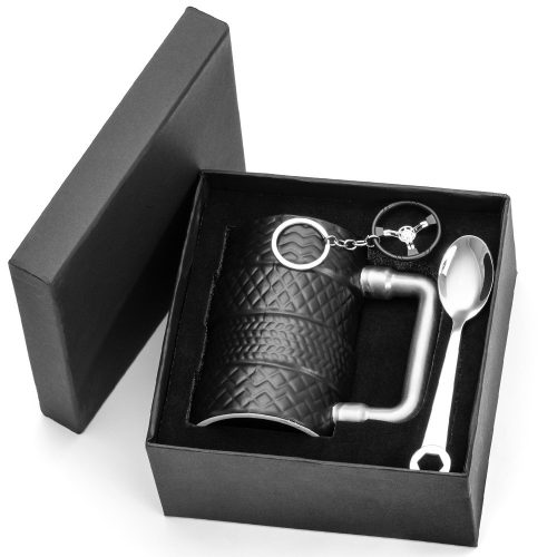 Zestaw Prezent dla kierowcy - kubek opony, łyżeczka klucz i brelok kierownica