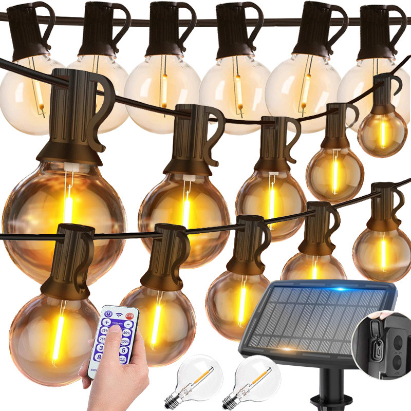 Solarna lampa łańcuchowa zewnętrzna G40 ma 7,6 m długości, 25 sztuk żarówek kulowych.Światła zasilane są energią słoneczną.Żarówki LED o wysokiej wydajności oszczędzają ponad 90% energii w porównaniu z żarówkami.Słoneczne zewnętrzne oświetlenie łańcuchowe automatycznie włącza się w nocy i wyłącza w ciągu dnia.Ładowanie USB może być uzupełnieniem, gdy w ciągu dnia nie ma wystarczającej ilości światła słonecznego.