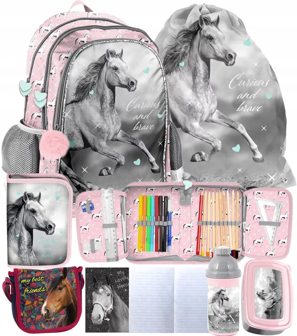 Optimized name: Majestic Horse Šolski nahrbtnik za deklico s kompletom konji