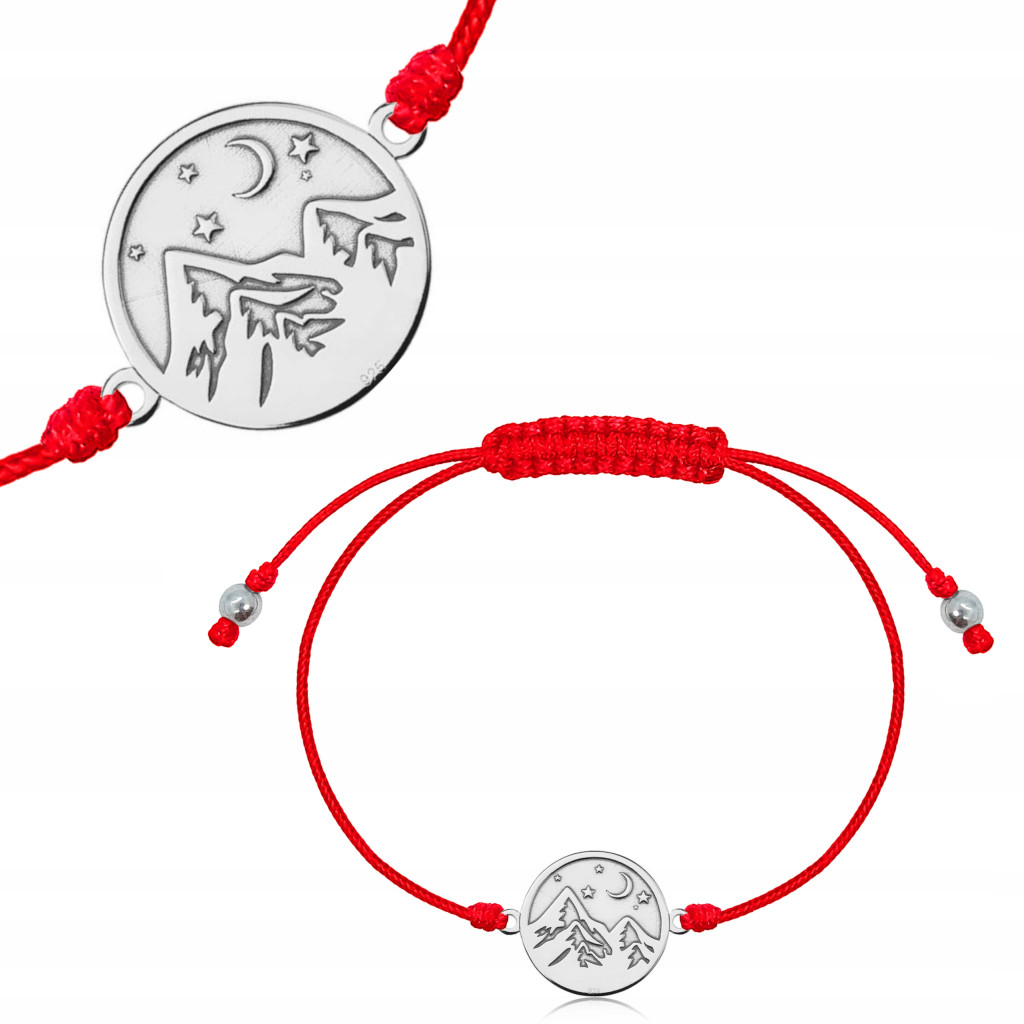 Bransoletka sznurkowa ze srebrnym motywem GÓRY KSIĘŻYC GWIAZDY z wiązaniem makramowym