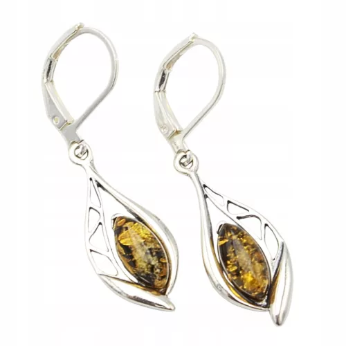 SREBRNI UHANI Z JANTARJEM, srebro 925
