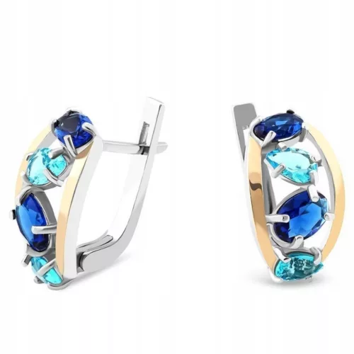 KOLCZYKI SREBRNE ZE ZŁOTEM I CYRKONIAMI 641