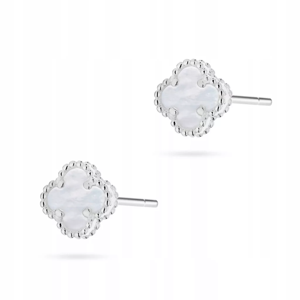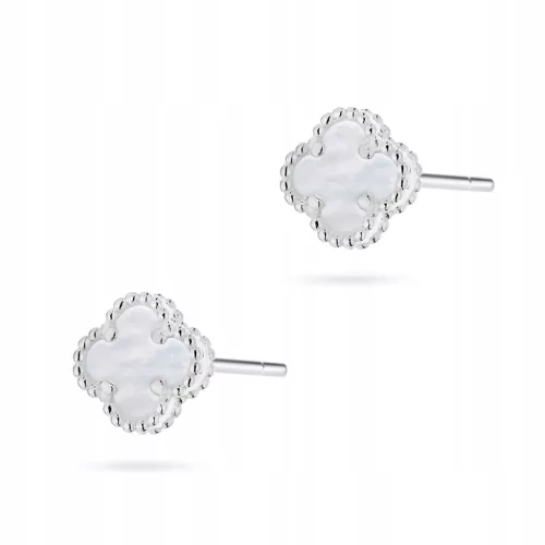 SREBRNI UHANI Ženski pr. 925 Deteljice z belo pasto na palčki