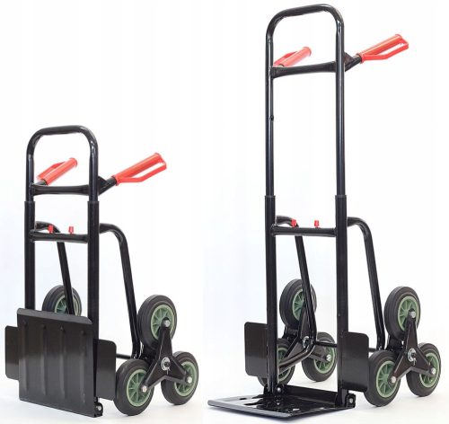 Wózek transportowy schodowy, składany o wymiarach podstawy 310 x 240 mm, to sześciokołowy wózek, który może być użytkowany do transportowania przedmiotów na płaskich powierzchniach z udźwigiem do 150 kg oraz na schodach z udźwig do 90 kg. Potrójne koła sprawdzą się na różnych nawierzchniach.