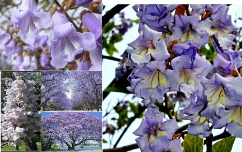 - Paulownia zawiązuje pąki kwiatowe późną jesienia, kwitnie na przełomie kwietnia i maja. Fioletowe, duże kwiaty (5-6 cm.) rozwijają się w puszystych pąkach na wyprostowanych kwatostanach. Kwiaty wydzielają silny i bardzo przyjemny zapach.