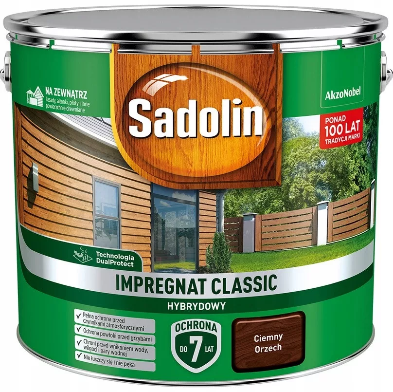 Sadolin Impregnat Classic Hybrydowy to nowoczesny, powłokotwórczy produkt przeznaczony do ochronno-dekoracyjnego malowania drewna na zewnątrz w celu zabezpieczenia go przed niszczącym wpływem czynników środowiskowych. Tworzy na powierzchni drewna powłokę odporną na grzyby.