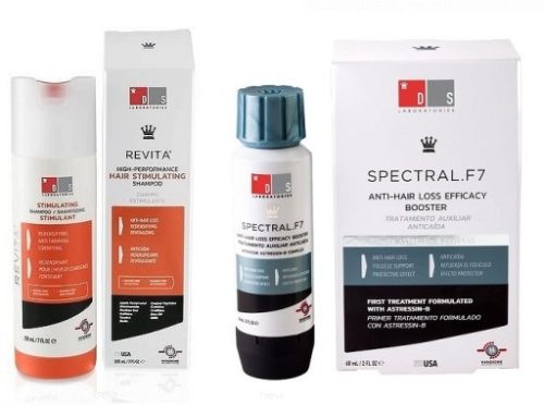 Spectral F7® to najnowszy produkt powstrzymujących łysienie wprowadzony do sprzedaży przez DS Laboratories. Spectral F7® zawiera najnowszy, bardzo obiecujący w walce z łysieniem składnik; Astressin-B. Badania składnika przeprowadzone na myszach laboratoryjnych oraz ochotnikach wykazały zauważalny przyrost włosów. Wstępne wyniki osiągniętych badań potwierdziły skuteczność tego składnika, znacznie przewyższającą inne dostępne na rynku i w laboratoriach. Astressin-B zyskał rozgłos po opublikowaniu wyników laboratoryjnych. Badania wykazały przyrost owłosienia w miejscach gdzie zastosowano ten składnik. DS Laboratories to pierwsza firma biotechnologiczna, która zainwestowała w badania na ochotnikach i potwierdziła skuteczność Astressin-B. Dlatego DS Laboratories podjęło decyzję o wprowadzeniu tego składnika do sprzedaży pod nazwą Spectral.F7. Astressin-B jest peptydem, który zawiera w swoim składzie aż 33 aminokwasy. Badania kliniczne dowiodły, że Astressin-B skutecznie blokuje działanie hormonów wydzielanych podczas stresu. Już od dawna Astressin-B podejrzewano o stymulowanie porostu włosów. Badania z 2010 roku potwierdziły te informacje.