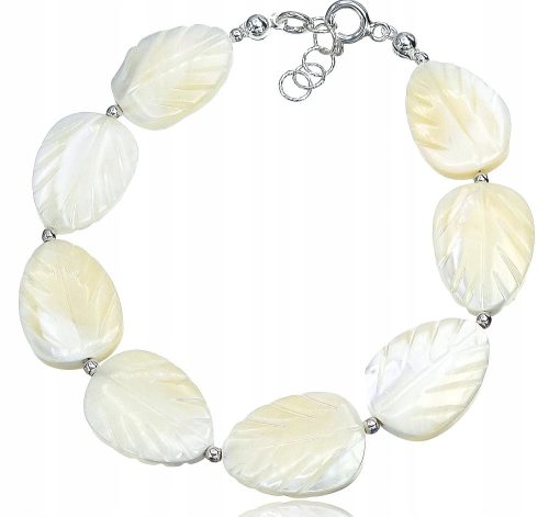 Bransoletka z naturalnej masy perłowej rzeźbionej ręcznie w kształcie delikatnych listków. Piękna biżuteria o naturalnej urodzie.