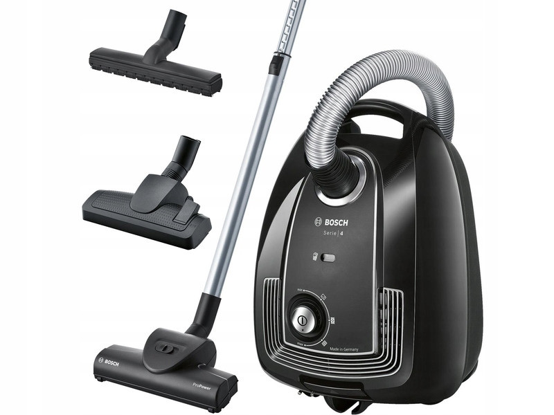 Odkurzacz BOSCH Serie | 4 z linii ProPower sprosta indywidualnym oczekiwaniom nawet najbardziej wymagających Klientów. Jego bardzo dużej pojemności worek (4 l), specjalna szczotka do twardych powierzchni oraz turboszczotka do dogłębnego czyszczenia dywanów poradzą sobie z każdym zadaniem.