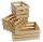 Leseni komplet 3 škatel iz bora za praktično in estetsko shranjevanje. Te škatle so večnamenske in se lahko uporabljajo za shranjevanje živil, orodja, kozmetike ali kot dekorativni element. Poleg tega