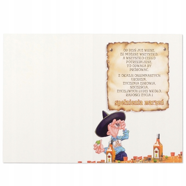 Wewnątrz kartki znajdują się życzenia oraz koperta.