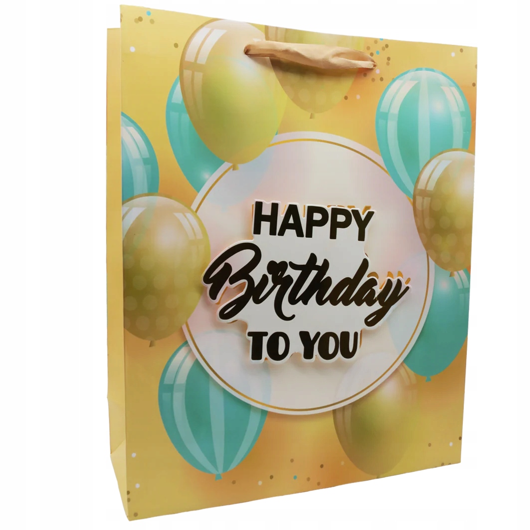 Elegancka torebka prezentowa z odstającym napisem "HAPPY Birthday to you", tworząc efekt trójwymiarowy. Torebka wykonana z grubego, lakierowanego papieru. Idealnie sprawdzi się do zapakowania prezentu na urodziny.
