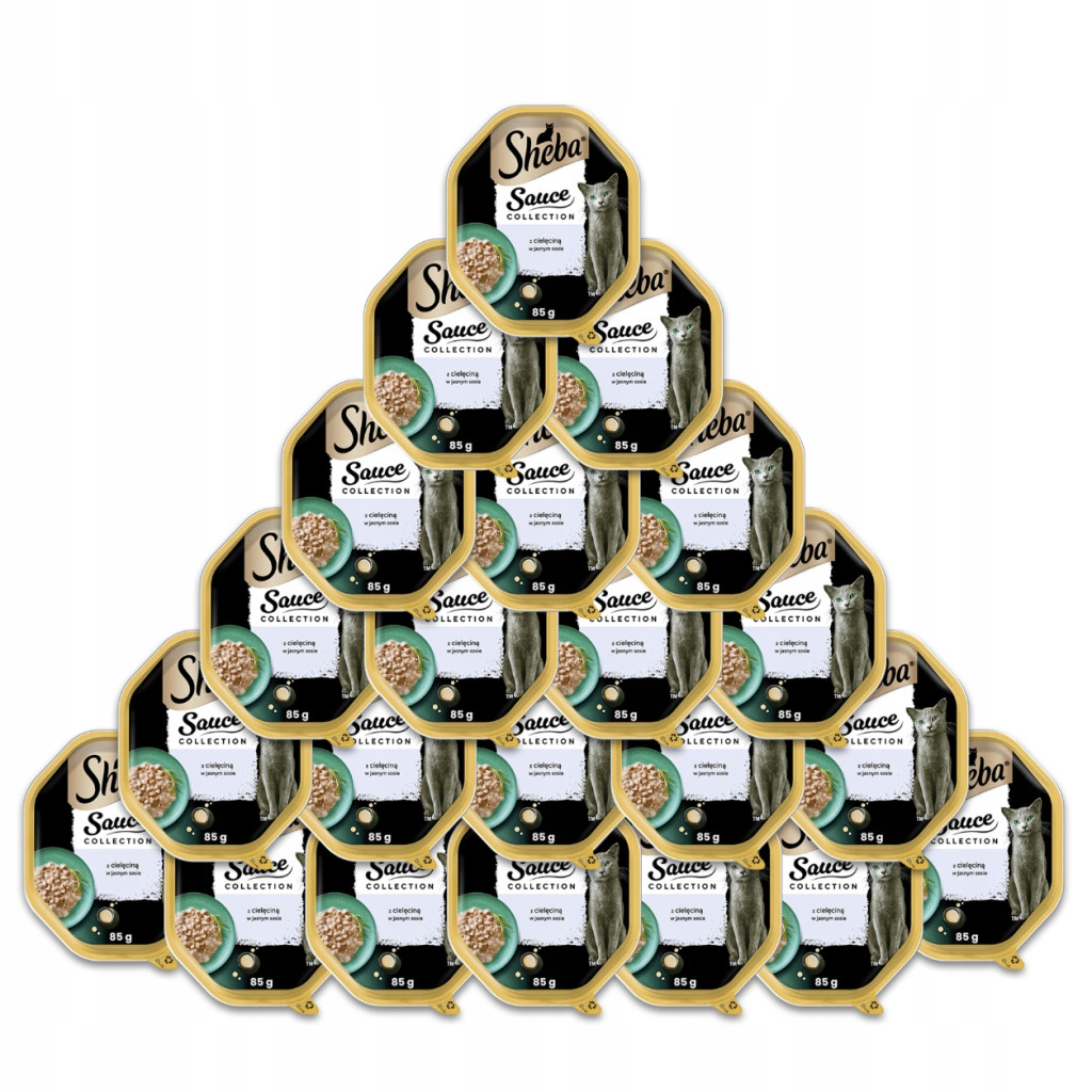 Sheba®Sauce Collection to mieszanka starannie wyselekcjonowanych kawałków w aksamitnym,jasnym sosie. Propozycja posiłku z kawałkami z cielęciną i warzywami zachwycipodniebienia nawet najbardziej wymagających kotów. Sekretem mistrzowskiejreceptury Sheba® Sauce Collection są wyrafinowane składniki oraz witaminy iminerały. W każdej tacce znajdują się składniki odżywcze, wspierająceprawidłowe funkcjonowanie Twojego kota. Pozwól swojemu kotu na kulinarnąrozkosz, aby mógł delektować się pyszną karmą Sheba® Sauce Collection, którazaspokoi nawet najbardziej wybredny apetyt.