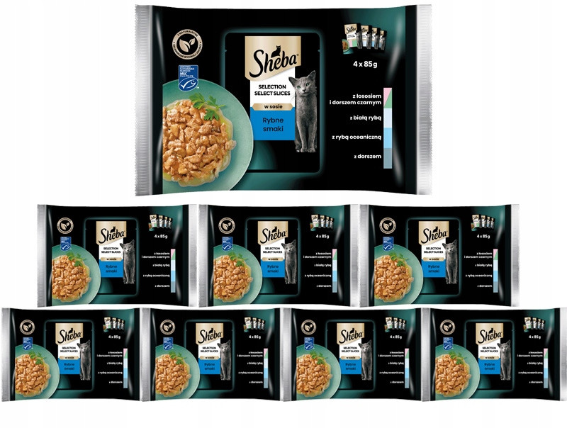 Zestaw zawiera 32 saszetki Sheba Selection select Slices Smaki rybne w sosie 85g