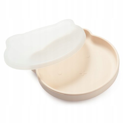Silikonowy talerzyk z pokrywką w kształcie misia zachęca do pierwszych kroków stawianych w samodzielnym jedzeniu. Dzięki swojemu miękkiemu i elastycznemu materiałowi jest bezpieczny dla małych rączek, a pokrywka zapewnia przechowywanie jedzenia na później.