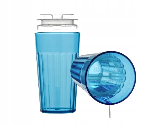 Dzięki opatentowanej wkładce zapobiega nagłemu rozlaniu całego płynu oraz zmniejsza możliwość wlania zbyt dużej ilości płynu do ust.