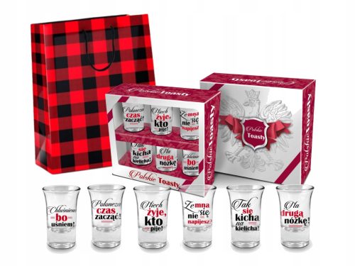 Piękny i praktyczny prezent dla Chłopaka - zestaw kieliszków, torebka prezentowa.