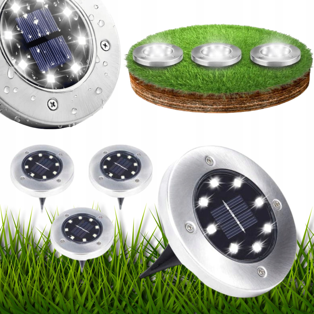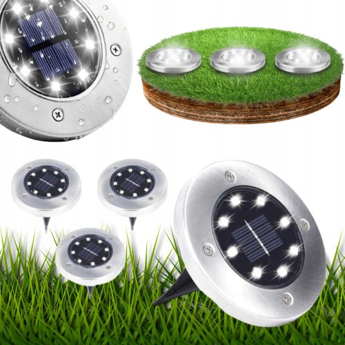 ⭐ LAMPA SOLARNA WBIJANA DYSK LED CZUJNIK ZMIERZCHU OGRODOWE LAMPKI x4 ⭐