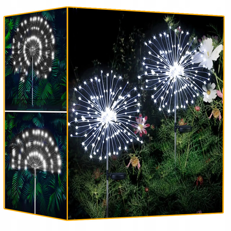 Solarne światło fajerwerków ma dwa tryby świecenia. Po przekręceniu przełącznika w stronę ON jest to tryb migania, w pozycji środkowej przełącznik jest w stanie OFF, a pozycja OFF to tryb stałego światła. Jest to kreatywny prezent dla przyjaciół lub sąsiadów na Boże Narodzenie, Halloween i Święto Dziękczynienia. To zewnętrzne światło dekoracyjne oświetli tarasy, klomby, ogrody, podwórka, ogrodzenia, chodniki i ścieżki itp.
