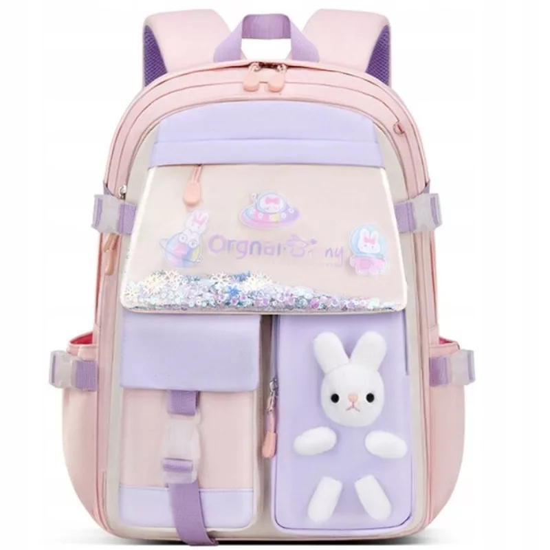 Uroczy plecak z pluszowym króliczkiem dla Twojego dziecka. Plecak będzie idealnym wyborem na pierwsze rozstanie z rodzicami związane z pójściem do szkoły, osłodzi maluchowi pierwsze chwile w nowej sytuacji i będzie dobrym towarzyszem w nowym miejscu.