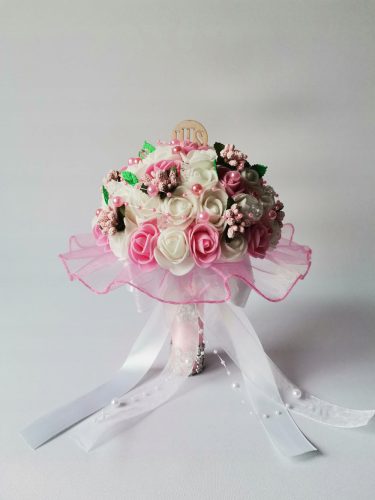 Oferujemy bukiety komunijne dla dziewczynek wykonane z kwiatów w odcieniu biało – różowym. Kwiaty wykonane z wysokiej jakości materiału piankowego. Średnica bukietu to 18 cm. Bukiety idealne dla dziewczynki na uroczystość lub jako pamiątka.