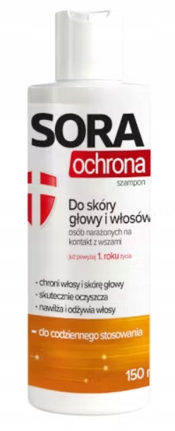 Sora ochrona szampon - do skóry głowy i włosów osób narażonych na kontakt z wszami. Już powyżej 1 roku życia.