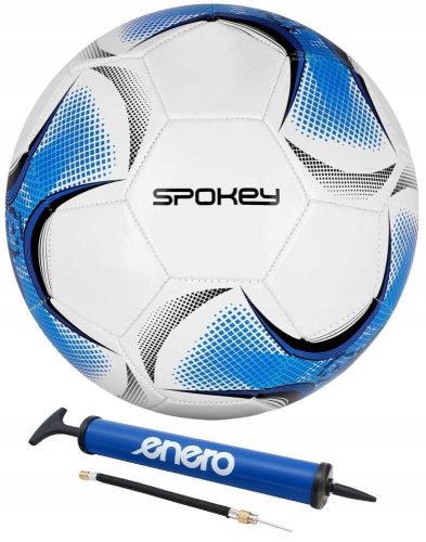 Spokey GOAL to wysokiej jakości piłka nożna wykonana z PVC (termoplastycznego elastomeru poliuretanowego). Jej panele zostały zszyte maszynowo, co zapewnia pewność i wytrzymałość łączenia. Model ten jest skomponowany z paneli o klasycznym, sześciokątnym kształcie. Dopracowany design o dominującej bieli wzbogaconej niebieskimi akcentami dodaje piłce charakteru i wyróżnia ją na tle trawiastych boisk.