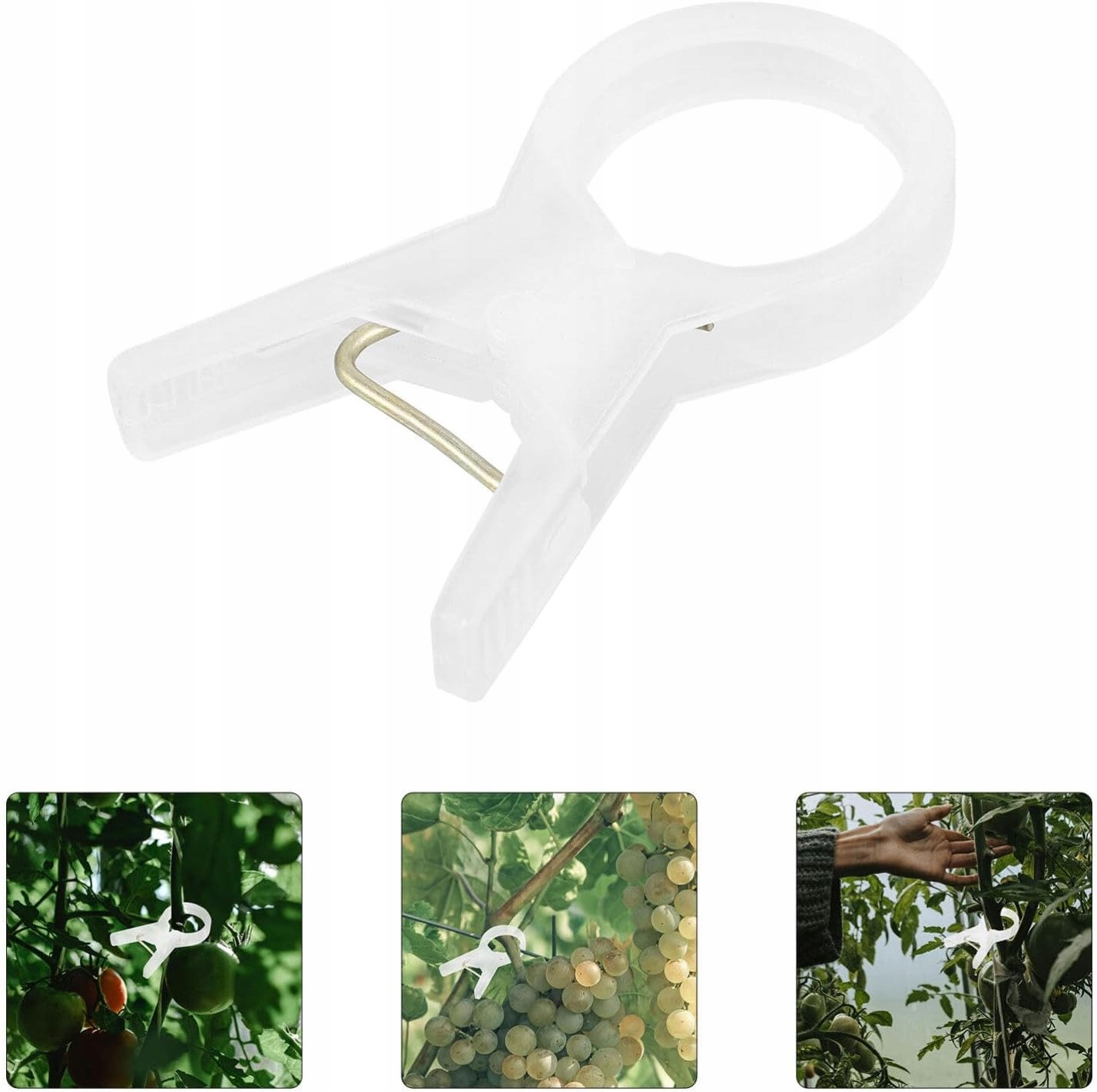 ten klips wykorzystuje materiały z tworzyw sztucznych elastyczny wytrzymały niełatwy do odkształcenia lub uszkodzenia wytrzymuje długi czas użytkowania. służy do mocowania roślin do sznurków klatek krat stojaków palików itp. w celu wspierania roślin wspinających się i rosnących pionowo. Te plastikowe klipsy do roślin mają niewielkie rozmiary są lekkie i łatwe w użyciu co zapewnia wygodę. klipsy mogą w prosty i łatwy sposób zapewnić wsparcie roślinom i łodygom dzięki szybkiemu i elastycznemu projektowi uwalniania. klipsy nadają się do podtrzymywania różnych roślin takich jak winogrona pomidory arbuz lub inne rośliny pnące o długich łodygach.