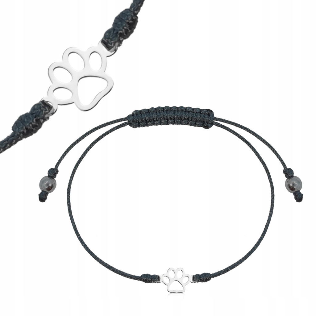 Bransoletka ze srebrnym motywem ŁAPKA PIESKA LUB KOTKA z wiązaniem makramowym