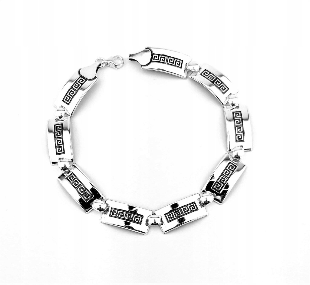 Wyjątkowa bransoletka oksydowana ze wzorem greckim. Ta wyjątkowa biżuteria wykonana jest z najwyższej jakości srebra pr925 i składa się z 9 polerowanych elementów. Każdy z elementów posiada elegancki i unikalny wzór grecki. Oksydowane wykończenie dodaje bransoletce rustykalnego uroku, podkreślając jednocześnie detale wzoru greckiego.