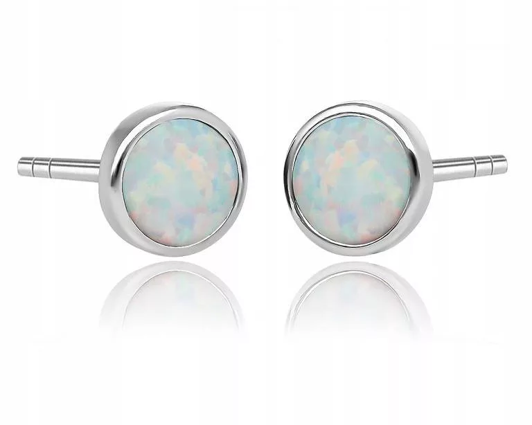 Kolczyki na zapięciu typu sztyft wykonane ze srebra najwyższej próby 925 oraz ozdobione pięknym białym opalem australijskim w gładkiej oprawie