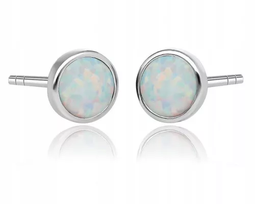 Srebrni uhani z belim opalom, okroglimi čepki (925).