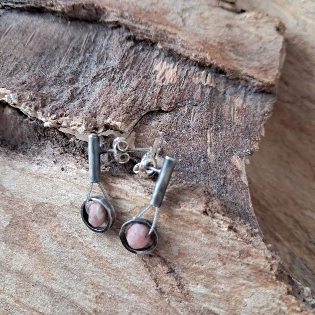Oryginalne kolczyki srebrne sztyfty z rodochrozytami