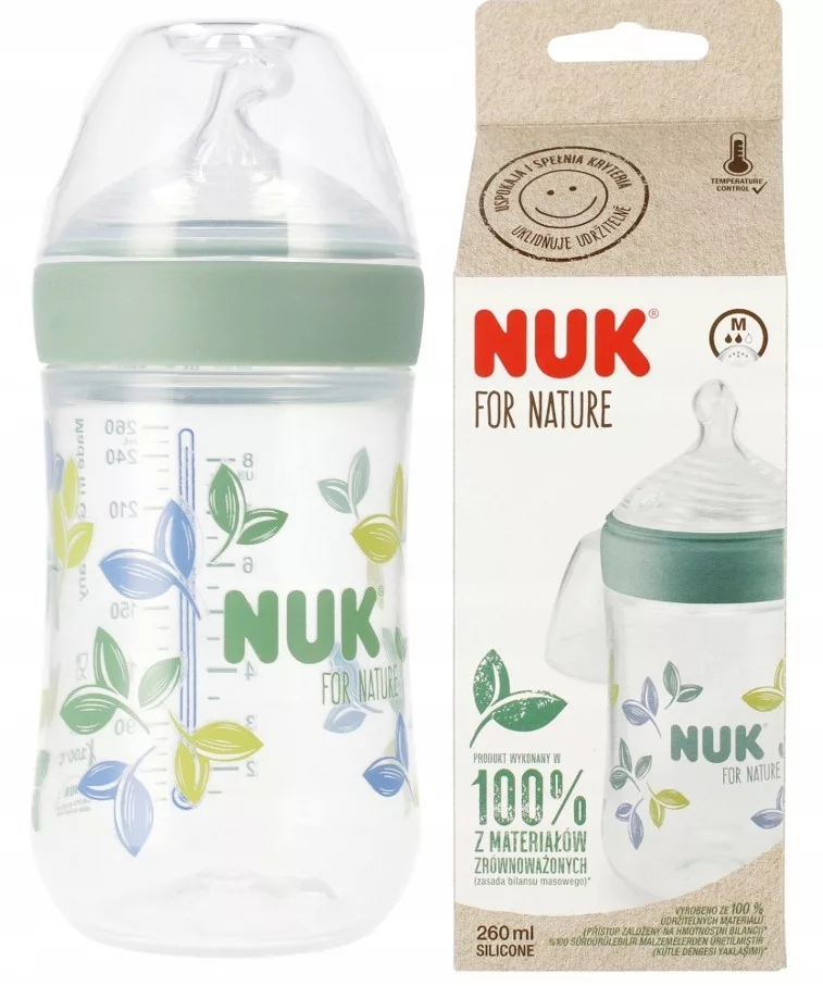 Butelka dla niemowląt NUK for Nature ma nie tylko naturalny kształt, ale jest również wykonana z naturalnych surowców, jest pakowana w sposób przyjazny dla środowiska i została wyprodukowana z wykorzystaniem przyjaznych dla środowiska metod produkcji.
