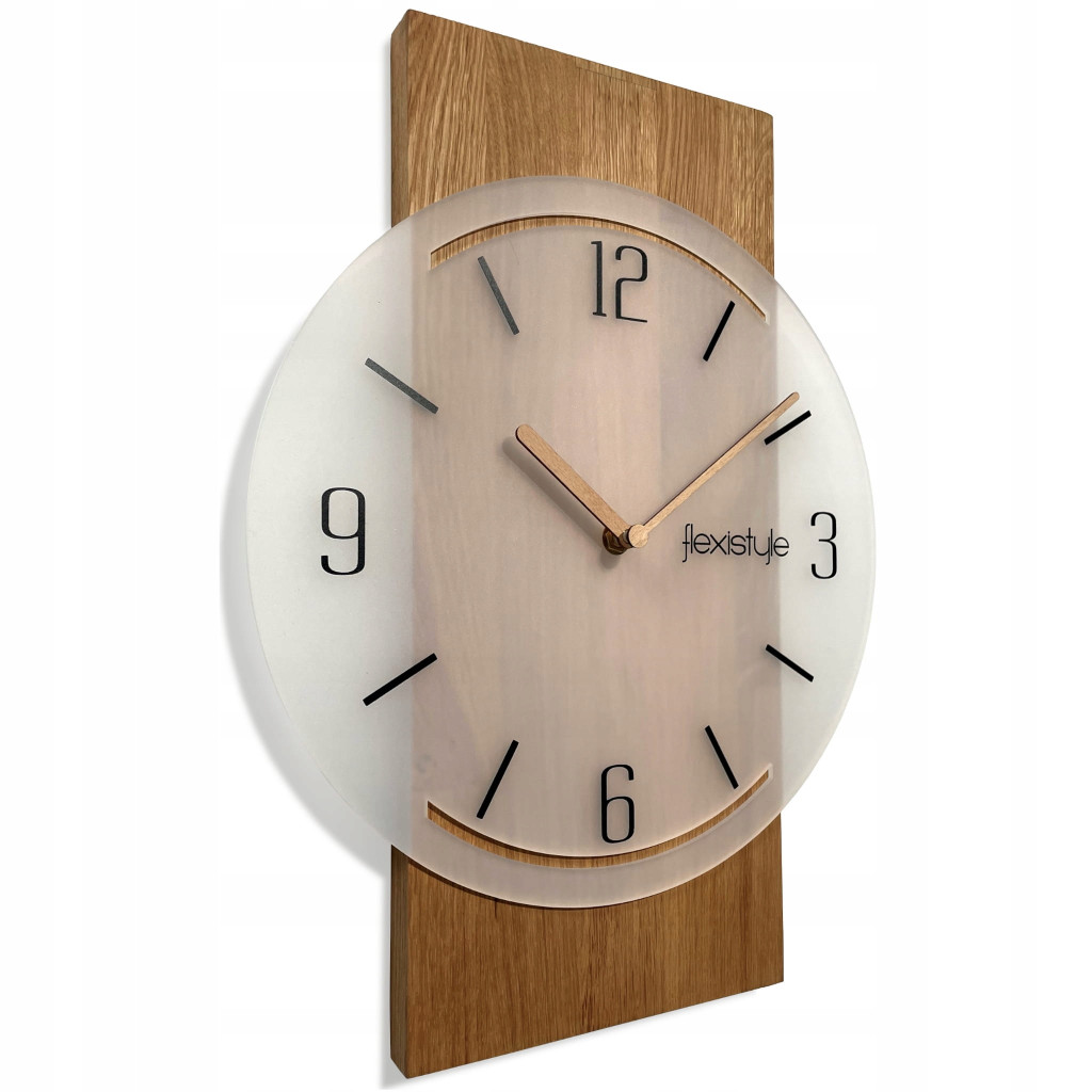 Drewniane wskazówki doskonale współgrają z dębową bazą, tworząc spójną całość. Dzięki starannej pracy nad detalami oraz precyzyjnemu wykonaniu, zegar nie tylko wspaniale spełnia swoje funkcje użytkowe, ale także stanowi wyjątkowy element dekoracyjny, który podkreśla charakter każdego pomieszczenia. Dodatkowo, wyposażony jest w cichy mechanizm bez tykania, co sprawia, że jego obecność nie zakłóca spokoju i ciszy w domowej atmosferze.