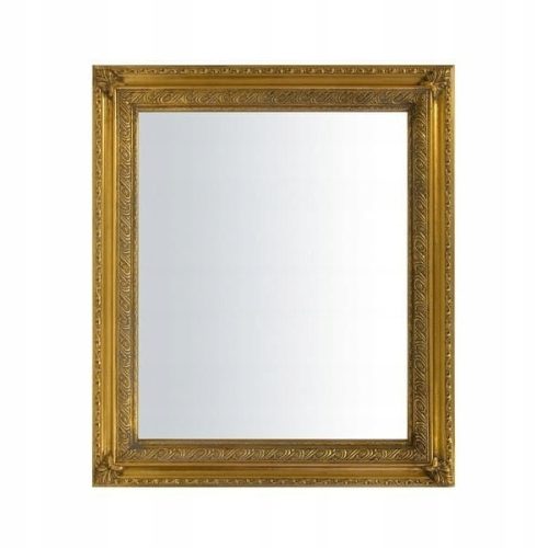 Lustro w złotej, dekoracyjnej ramie w kształcie prostokąta. Piękny i ozdobny dodatek do salonu, sypialni bądź przedpokoju.