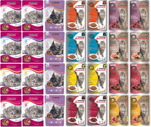 Skład: Mięso i produkty pochodzenia zwierzęcego (74% w filecikach), Ryby i produkty pochodzenia rybnego (8% tuńczyka w filecikach), roślinne ekstrakty białkowe, produkty pochodzenia roślinnego (0,4% Inuliny), substancje mineralne, cukry.
