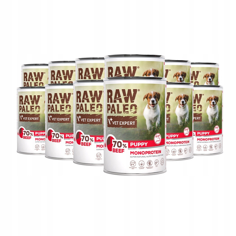 RAW PALEO PUPPY BEEF to niezwykle smakowita karma mokra dla szczeniąt (od odstawienia do ok. 1. roku życia) oraz suk ciężarnych i karmiących. Receptura karmy oparta jest tylko na jednym źródle białka zwierzęcego (wołowina), co pomaga ograniczyć ryzyko wystąpienia alergii pokarmowych.