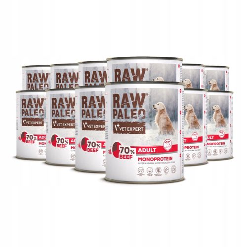 RAW PALEO ADULT DOG BEEF to niezwykle smakowita karma mokra dla dorosłych psów (powyżej 1. roku życia). Receptura karmy oparta jest tylko na jednym źródle białka zwierzęcego (wołowina), co pomaga ograniczyć ryzyko wystąpienia alergii pokarmowych.