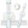 to świeca stylizowana delikatną białą satyną z minimalnym dodatkiem błękitnej wstążeczki z srebrną nitką nadającej szyku prostocie oraz kokardką.