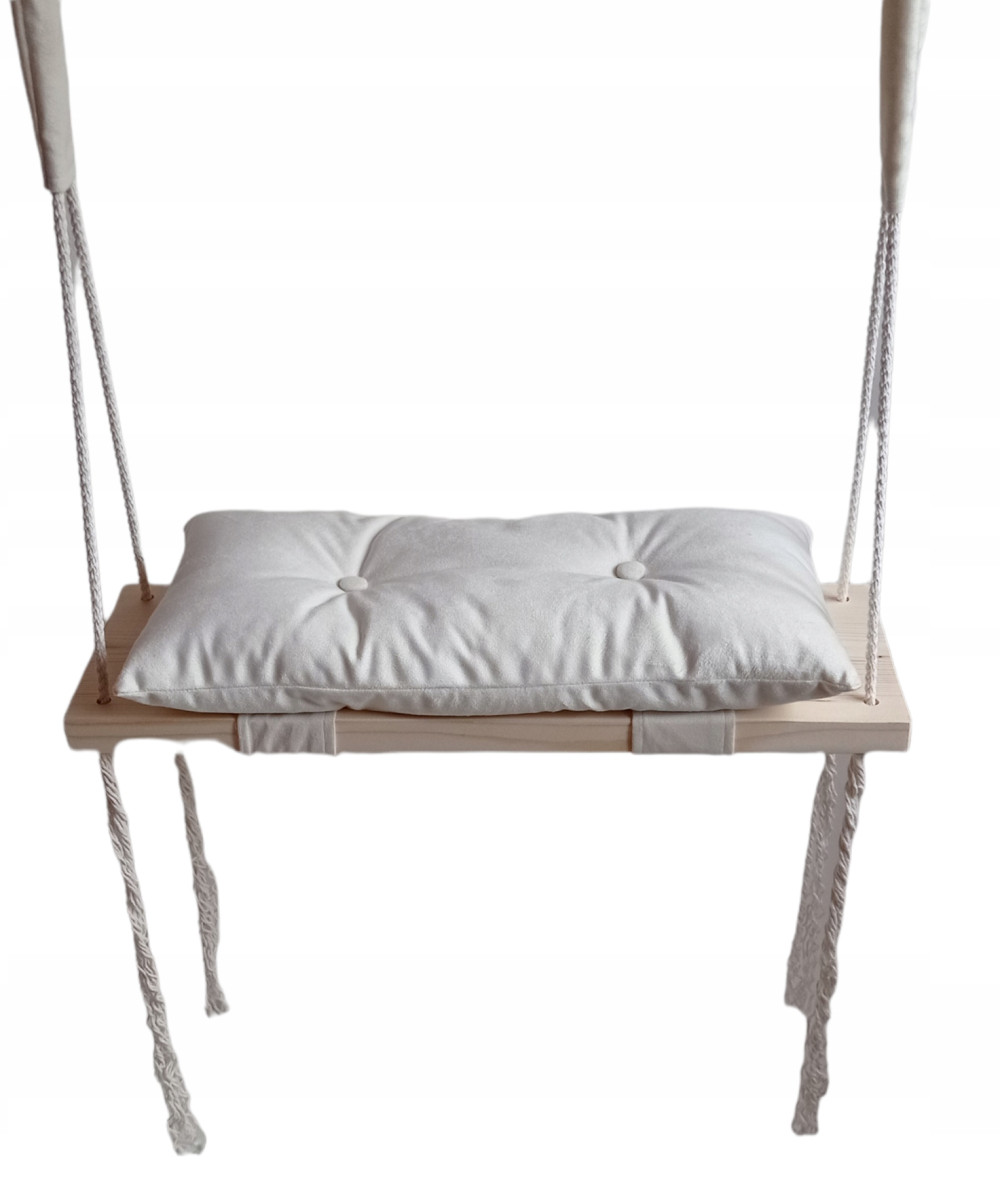 Oferujemy Państwu nową huśtawkę siedzisko na poduszce. Huśtawka wykonana jest z drewna oraz mięciutkiego materiału plusz. Huśtawkę wykonujemy samodzielnie. Jest to produkt polski.