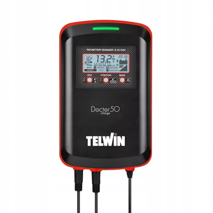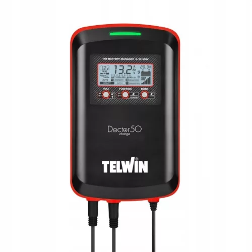 DOCTOR CHARGE 50 6/12/24V jest wielofunkcyjnym elektronicznym prostownikiem z technologią POWER STREAM do kompleksowej obsługi akumulatorów typu WET mokrych-kwasowych, GEL żelowych, AGM z matą z włókna szklanego (MF bezobsługowych, spiralnych, do systemów Start-Stop) oraz wspomagania działań w serwisach i salonach samochodowych. DOCTOR CHARGE jest urządzeniem wielofunkcyjnym przeznaczonym do: automatycznego ładowania i konserwacji technologią PULSE-TRONIC, testowania akumulatora, prądu rozruchu i alternatora, wspomagania uruchamiania pojazdów (model.50), odsiarczania i regeneracji akumulatorów. Jest też źródłem stabilnego napięcia podczas wymiany akumulatora, programowania, czynności diagnostycznych i podczas pracy w salonach samochodowych..