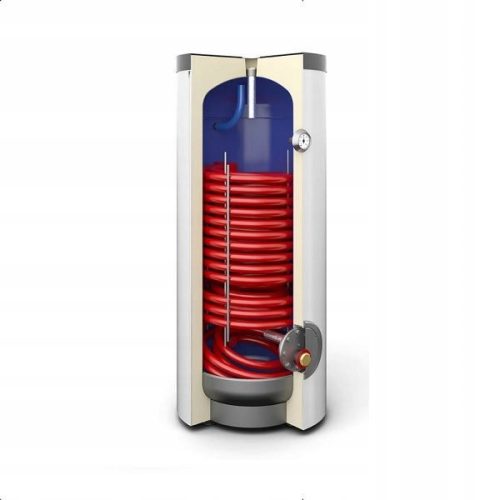 •Powiększona wężownica 5m2 (na całej wysokości zbiornika), stworzona do szybszego nagrzewania wody oraz współpracy z pompami inwerterowymi oraz on-off jest idealnym produktem jakościowym i cenowym pod Twoje źródło ciepła.
