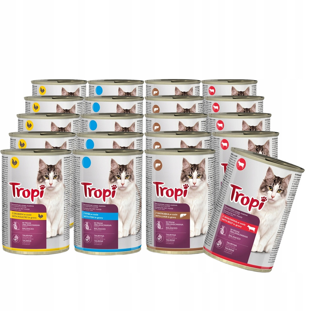 Tropi to pełnoporcjowa karma dla kotów wszystkich ras. Zalety karmy: