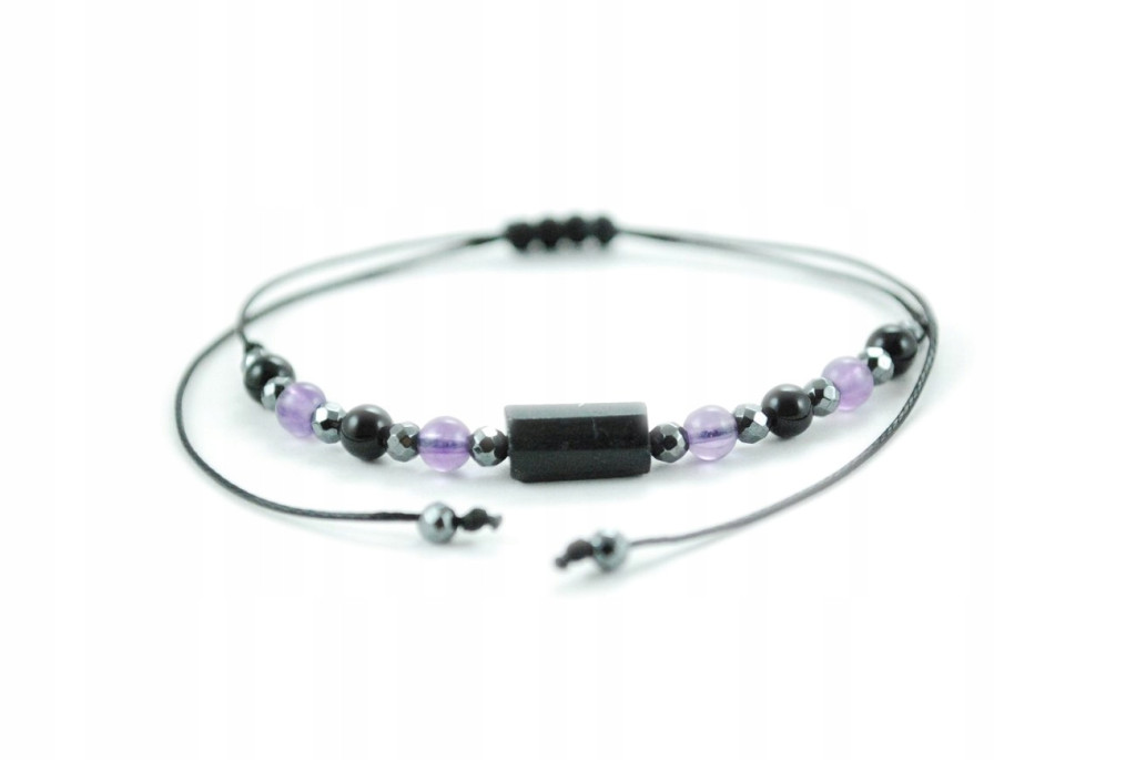 Bransoletka z kamieniami: TURMALIN + AMETYST + HEMATYT.